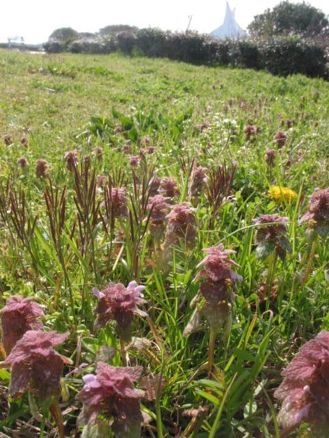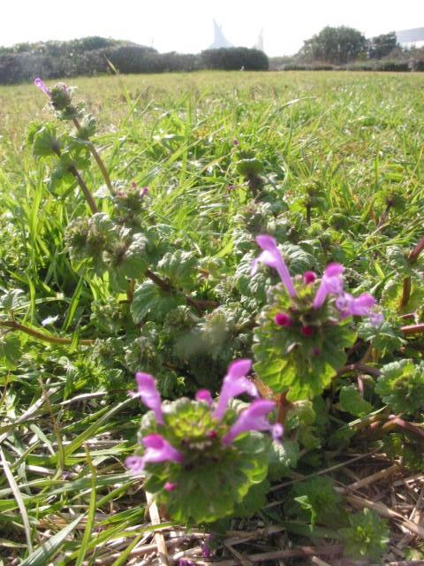 わたしはホトケノザを撮っていて、夫はビールを飲みました。