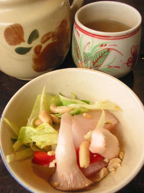 サラダ&後ろの蓮茶は、共通のセットです。 サラダは見た目以上に食べごたえアリ。