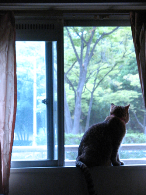 食事もして、ひととおり探検を終えると、猫たちの 「おんも見る椅子」 の隅っこへ。
