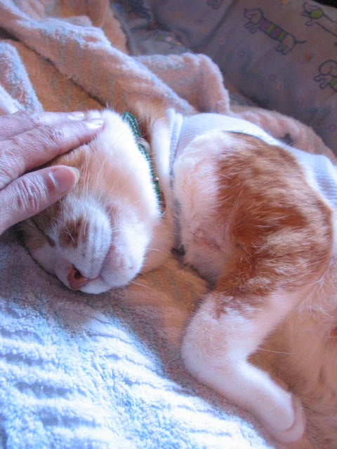 パリットシタタオルニ転ガッテ陽ニアタルノッテ、トッテモ幸セ。 イイ気持チ。