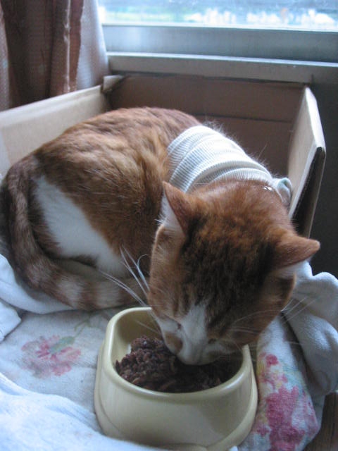 この頃はまだおちゃびんは、いっぱい食べたい時には、茶碗を箱ベッド へ「持ッテキテ」 と言いました。