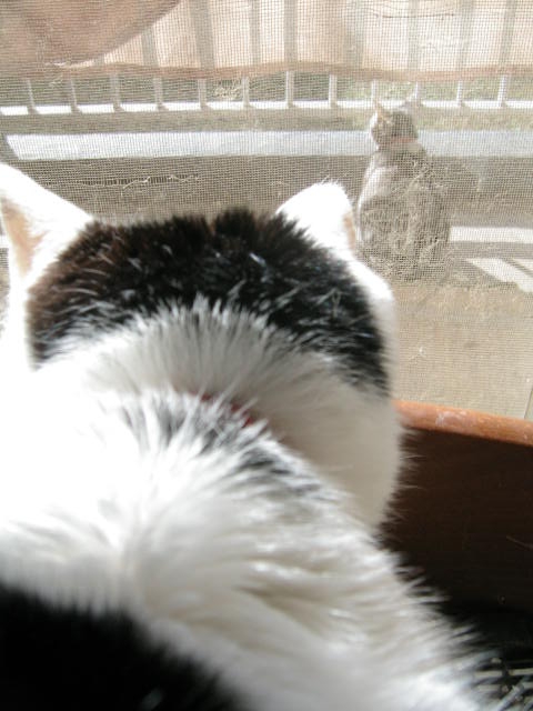 よく立ってるけど、すぐ気づかれます。 ちっちっ。 タキシード猫大王、頭いいな。