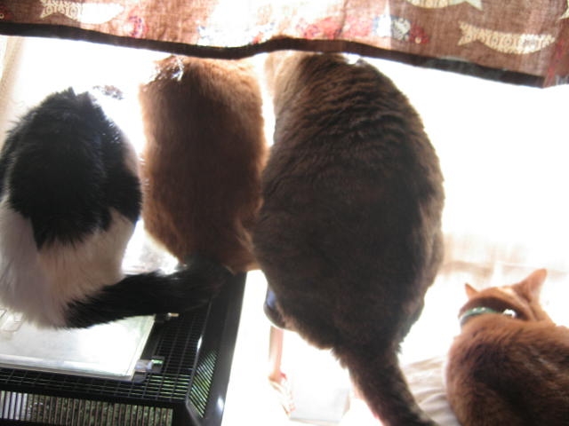 たーまん模様のお嬢さま方は団体行動がお好き。 仲良しなのネ。 手前から、茶々・初・江(暫定)