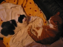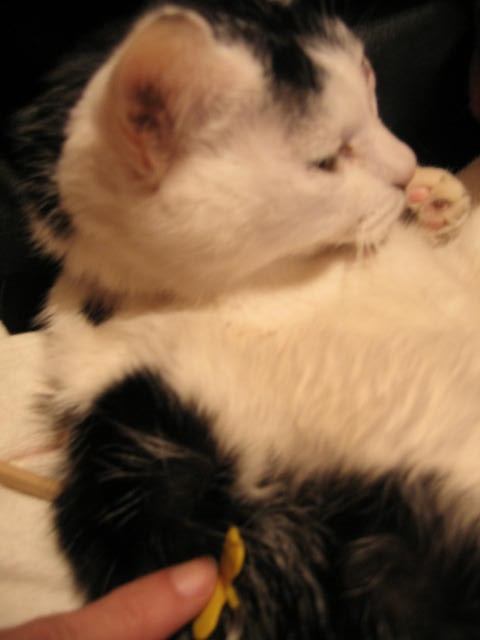 ピッ君、オ手々舐メテアゲルネ。 猫ハ、イツダッテ綺麗ニシテナクチャダメダヨ。