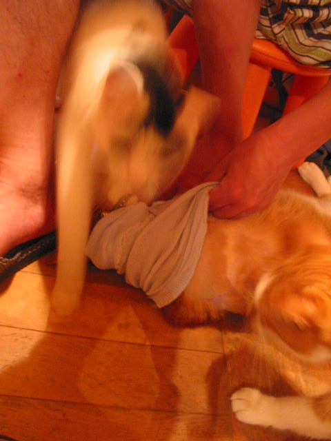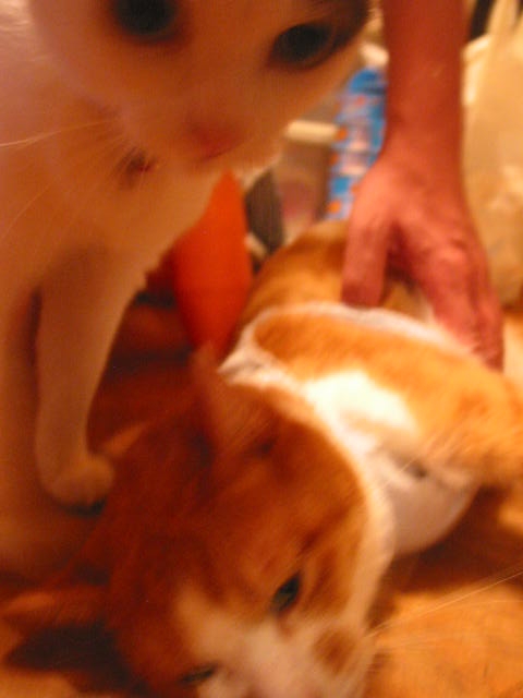 真ん中の猫が 「エッ?! ヤーダー! 水川あさみ役?!」 的ないい顔をしてます。 ぶほほ!