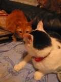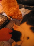 隣のぶーにゃんが退院祝いに来てくれました。 にょごにょごお話中。