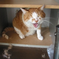 「オカエリィ」 出かけていたら、調子に乗って毛をむっしりー。
