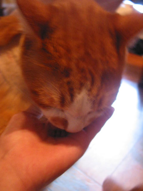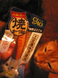 通称 「猫ポッキー」 は、ポキポキ折って、手から食べるのが好きなおちゃびん。