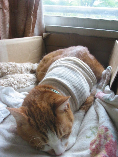 だって通院の日なんですよ~。 チョッキのお取替えと、傷口のチェックをします。