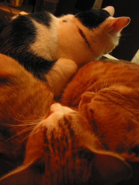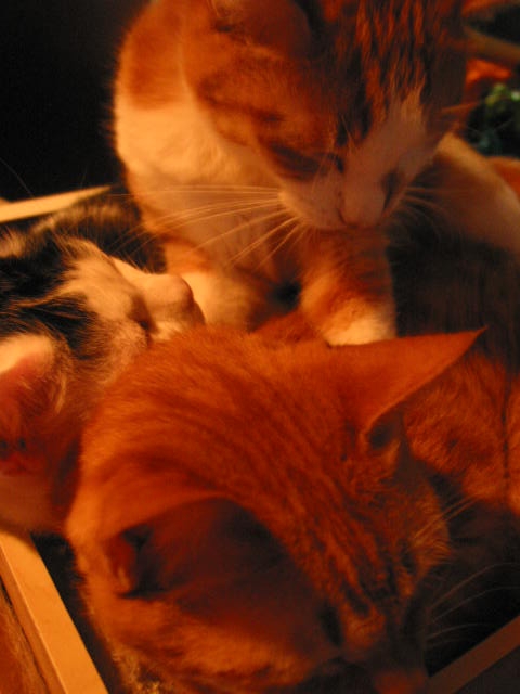 たーまんがどいて、ちっ君が来て、赤トラ3匹で、うとうと。