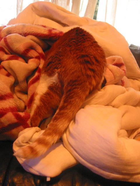 (・◇・)/ 尻尾の付け根がモッサリしているのはデブ猫の証デス。