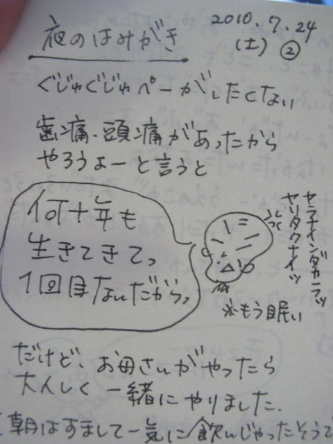 家族ノートに 「報告マンガ」 を描くの巻。 その場の勢いで描くのデス。