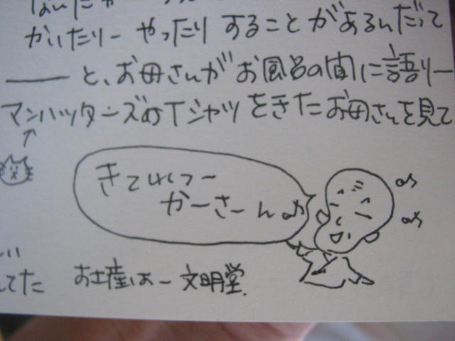 「うふふふ。 すぐ書いといて。 買うものは…とりあえず、まっすぐ来ちゃって」