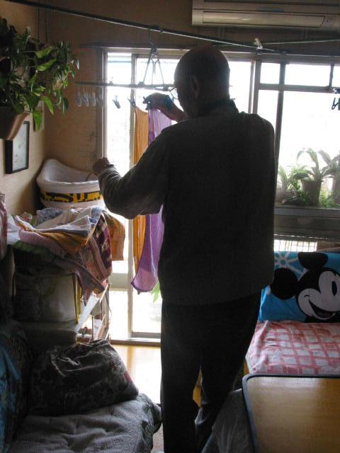 あまり歩けないけれど3分ぐらいは立てます。 洗濯物を干すのも、いいリハビリになります。