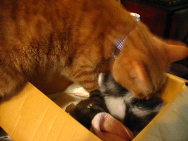毛布も大事だけど、たまこっぺと仲良くなりたいおちゃびん。 何度も見に行く。