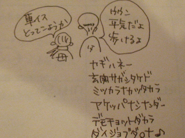 オチャビン兄チャンハ、泣イテパパニ言イツケマシタ。 「意地悪サレマシタ~」
