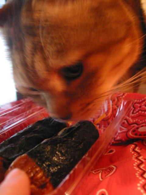 くんか、くんか、フン、フン。海苔、いい匂いネ。