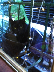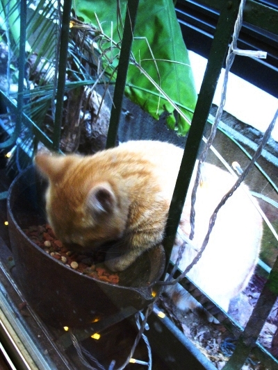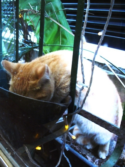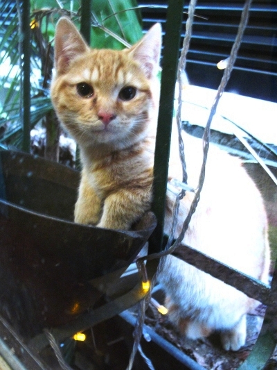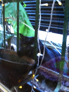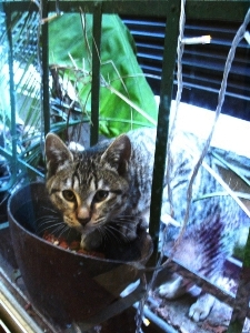 おちゃびんが心配で、出ては戻り~ 猫と遊んでは出かけ~ で