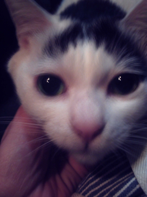 ひと晩中ぱっちり目を開けて、にっこりわたしを見ていた たーまん。
