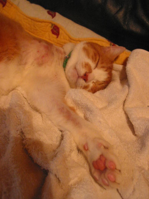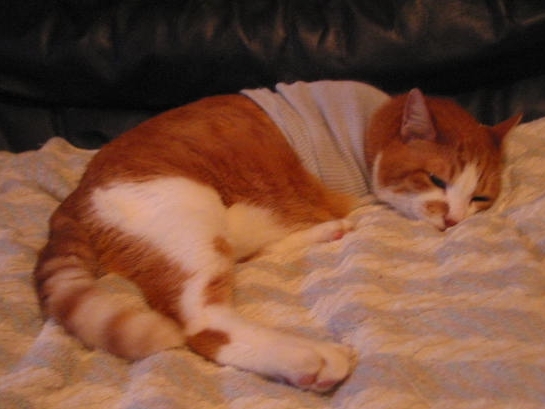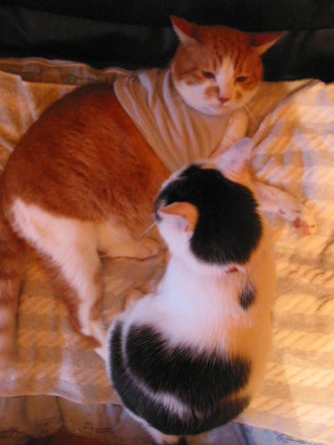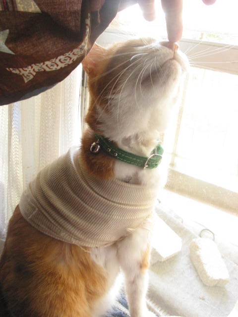 おちゃびんは手術痕をカジカジしてしまい、アカムケちゃってます。