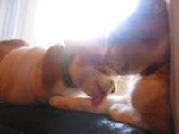 ピッ君、オ手々舐メテアゲルネ。 猫ハ、イツダッテ綺麗ニシテナクチャダメダヨ。