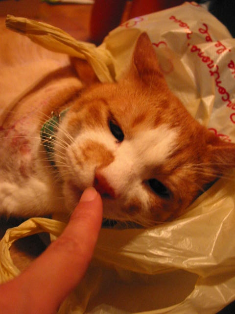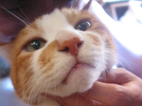 でも、猫の体にはヨクナイから、3本まで。 握って、ゆっくり食べさせます。