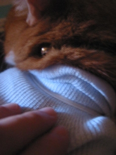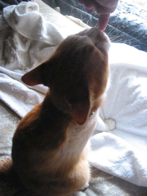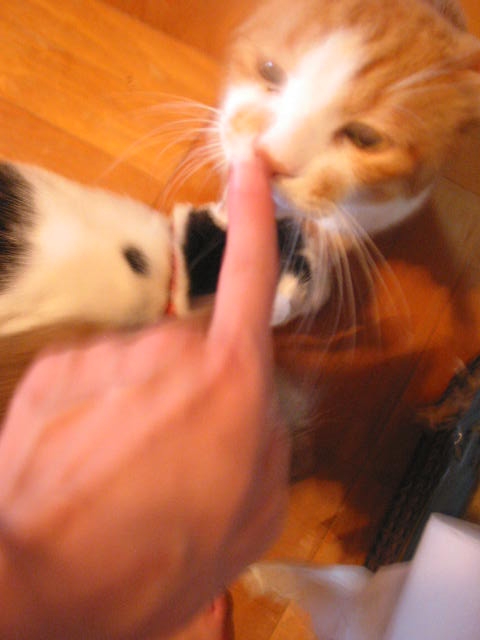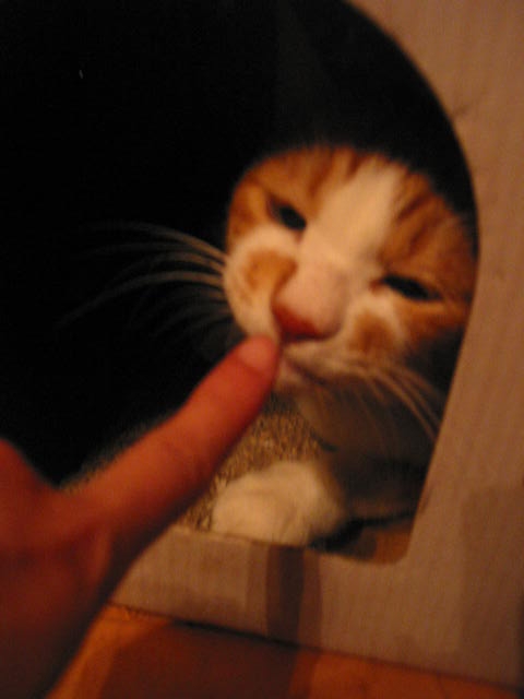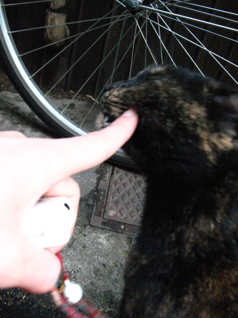 シマコちゃんを押していたわたしの指に、自ら突撃。 ほっぺスイッチ&お鼻スイッチ~。