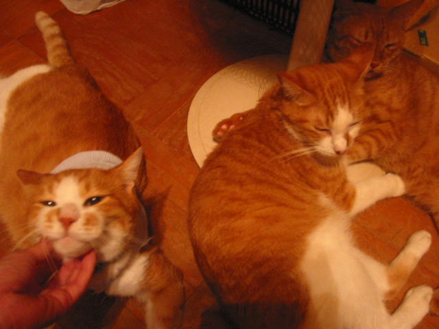 真ん中の猫が 「エッ?! ヤーダー! 水川あさみ役?!」 的ないい顔をしてます。 ぶほほ!