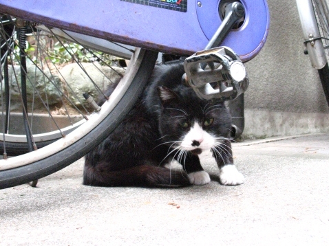 よく立ってるけど、すぐ気づかれます。 ちっちっ。 タキシード猫大王、頭いいな。