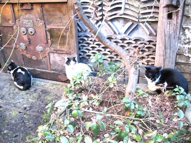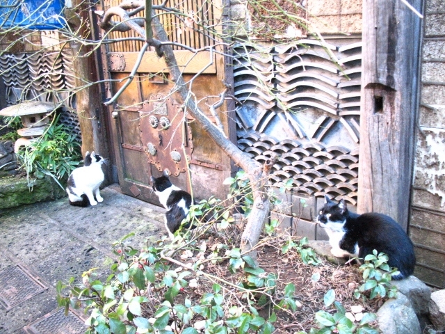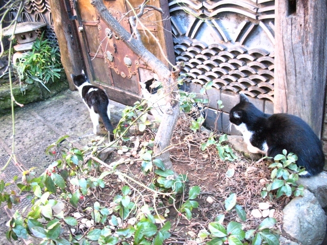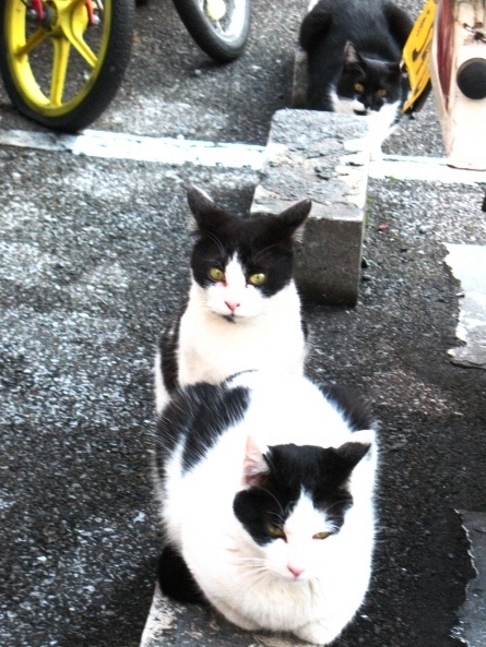 お店の方がご飯をくれる時間がもうすぐ。 大人しく待っています。 よい子たちナリ。