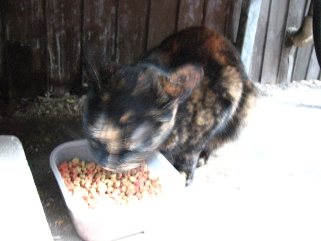 「ワタシト、シマコチャンノ、カリカリヨ」 頭振って食べて、可愛い~( ´艸`)