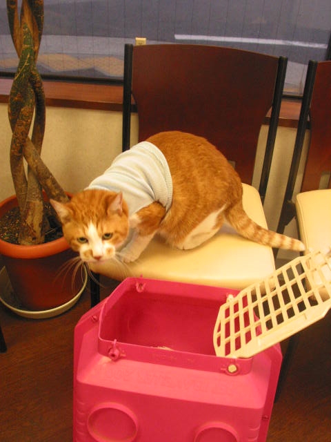 トイレに入り、ちゃんとウメウメ。 (ちびーずが全員見学し、おちゃびんはフンガー)