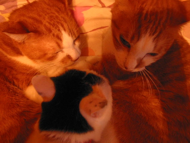 おちゃびんがトイレに行く度に、猫たちはゾロゾロついて行き、ヤジヤジ世話を焼いています。
