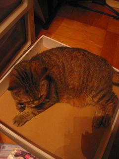 ラーメンの箱は、早速 「ねんね箱」 にされました。