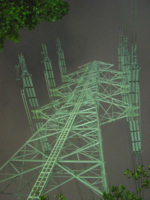夜の鉄塔は巨大ロボふう。 カッコイイふう。 腕から電気を出すのがお仕事ふう。