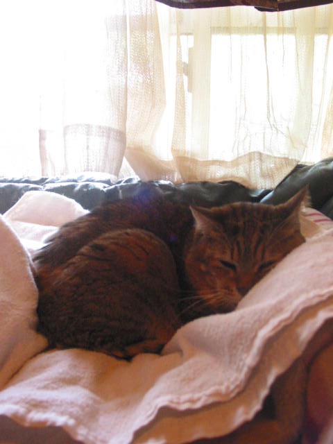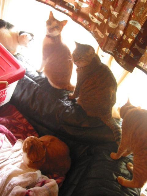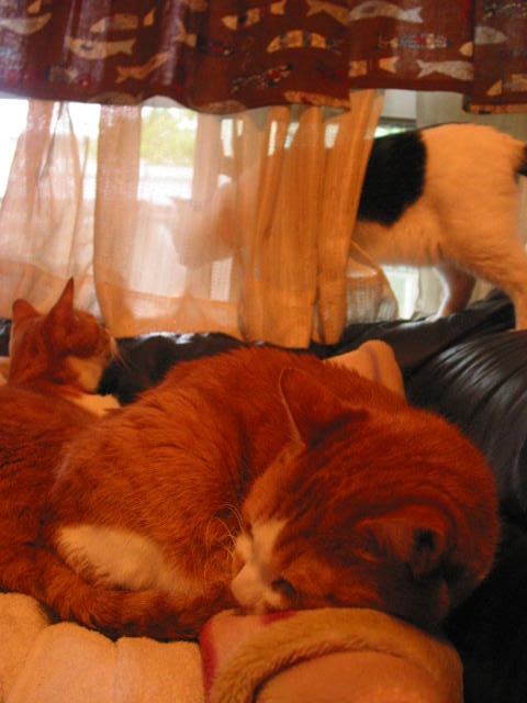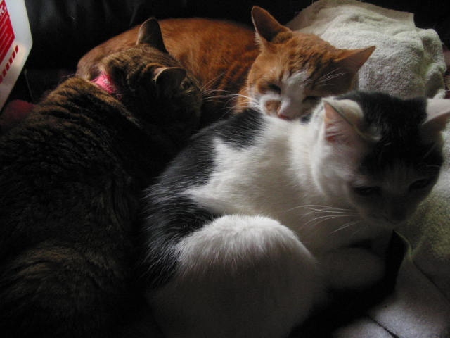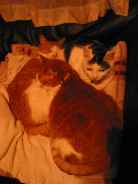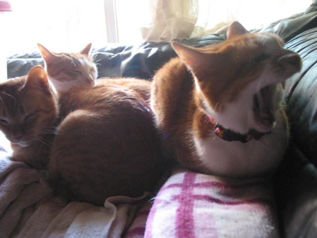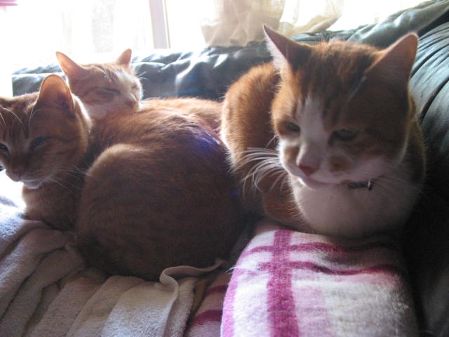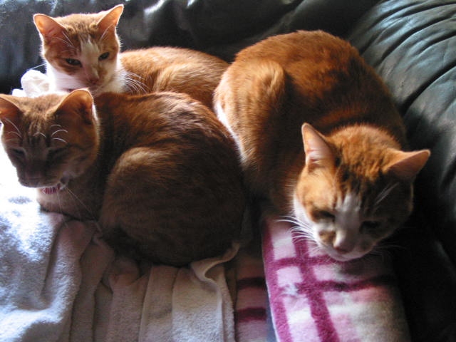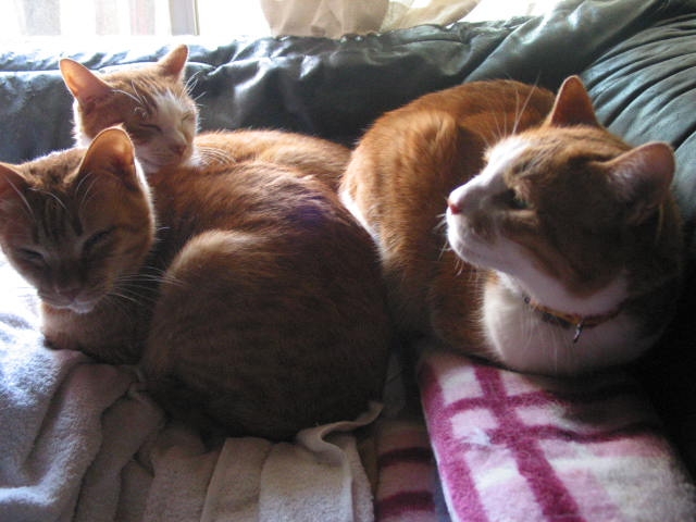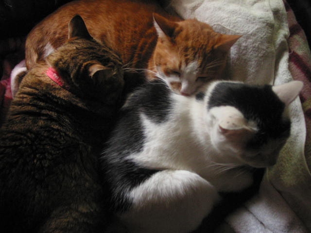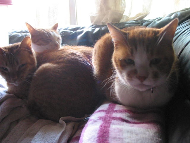 たーまんがどいて、ちっ君が来て、赤トラ3匹で、うとうと。