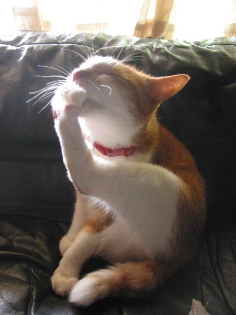 朝ご飯は嫌いなビーフ缶が出たので、左手で上手にウメウメして残したそうです。