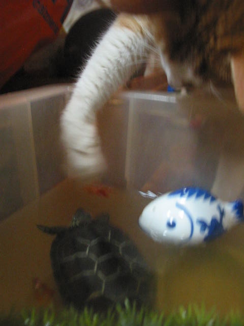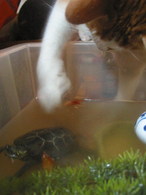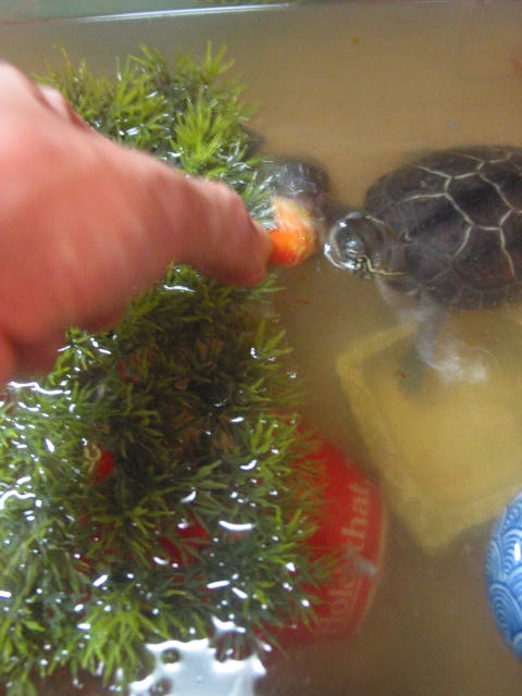 生ものばっかり欲しがるので、亀ちゃんの水は1日で真っ黒くろすけ。 毎日お取替えのお亀様。